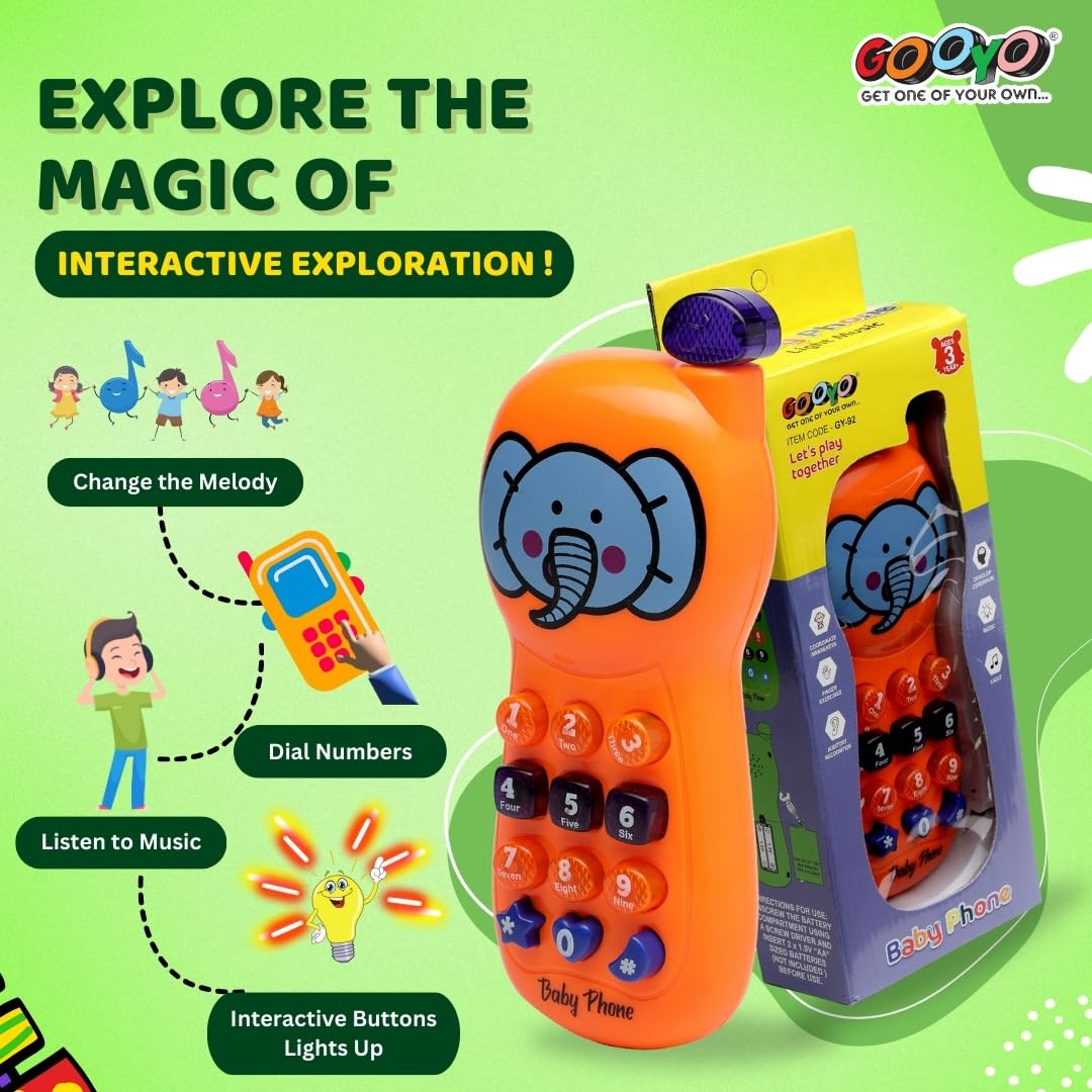 The Gooyo GY-92 battery operated role play musical phone toy is an ideal choice for kids, baby girls, and boys. Designed to provide endless entertainment, this toy fosters creativity and role-playing while keeping young minds engaged.