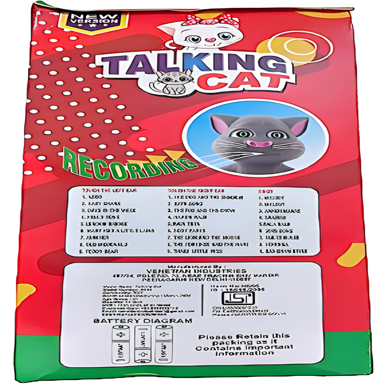 Introduce your child to the captivating world of playtime with the Interactive Talking Cat Toy. This delightful feline friend is not just a plush toy; it’s an engaging companion that will entertain and amaze for hours. With the ability to mimic your child’s voice, this Talking Cat Toy offers endless fun and laughter. It can tell stories, recite rhymes, and sing songs, ensuring that playtime is always exciting and entertaining. Safe and Durable: Safety is a top priority. This toy is made from quality materials, ensuring it’s safe for toddlers to cuddle and play with. It’s built to withstand the rigors of active play, providing lasting enjoyment. Recording and Playback: The Talking Cat Toy has a recording feature, allowing your child to record their voice and hear it played back in a cute cat-like manner. This feature fosters creativity and imagination while adding an extra layer of excitement to playtime.